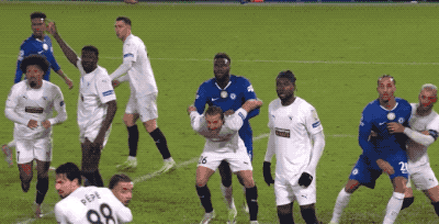 第17分钟,内托45度传中,切尔西门前双鬼拍门,恩佐头球破门,但进球被秒吹,裁判认定恩佐推人犯规在先。