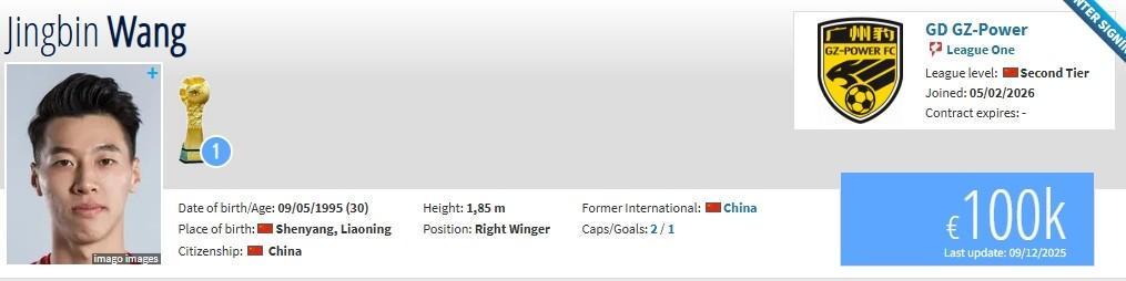 北京时间2月5日,德转更新,原石家庄功夫球员高华泽、王靖斌加盟广东广州豹。