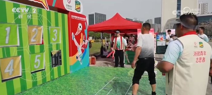 本届赛事全程实行低价惠民政策,同步推出亲子票、公益票,而且每位到场的观众都可领取专属观赛包,让球迷观赛之余满载而归。 场内高潮迭起,场外的消费也逐渐升温。在嘉兴市体育中心西广场,球迷专属商店里售卖着全省11支球队的队服,并且提供现场印号服务。 此外,嘉兴还联动当地文旅资源,在赛场外打造足球市集,汇聚了非遗文创、网红小吃、农特产品,搭配VR足球互动等趣味项目,为消费者提供更丰富的观赛体验。 赛事引流 “票根”联动多种消费场景